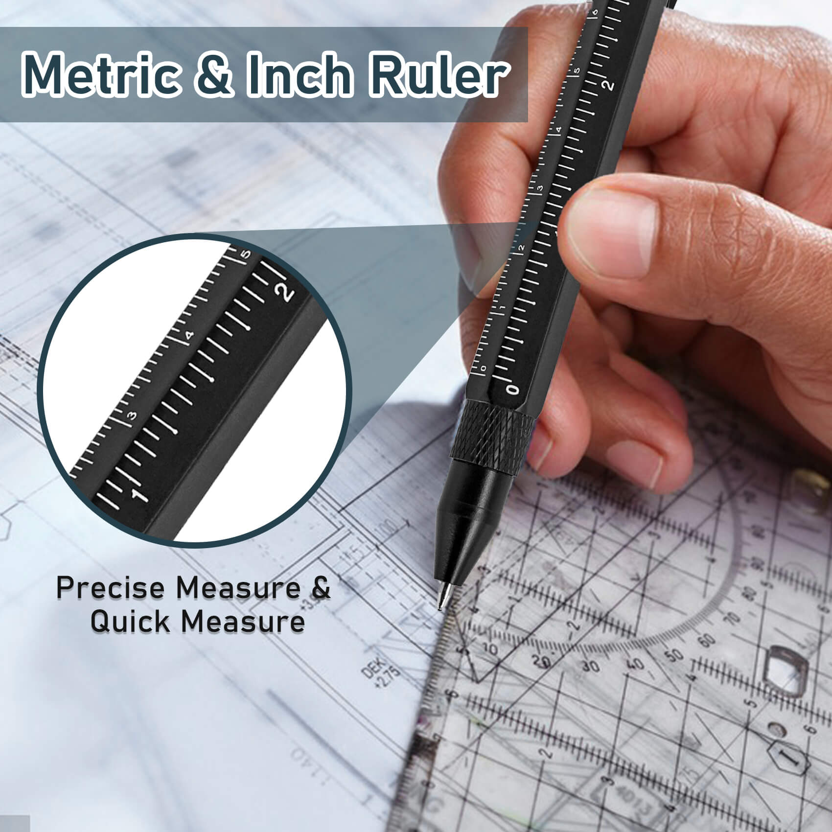 All-in-one efficiency to declutter your workspace, UNIOO 11-in-1 Multi-Function Pen integrates a ruler, knife, and pen, perfectly adapted for various scenarios: from office paperwork to precise measurements on construction sites, to detailed work in electrical and mechanical tasks.